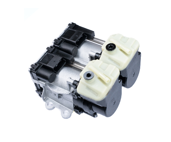 本產(chǎn)品安裝在變速箱上,通過(guò)位置和壓力需求驅(qū)動(dòng)電子液壓執(zhí)行器雙離合器系統(tǒng)。產(chǎn)品使用高精度滾柱絲杠傳遞動(dòng)力,活塞端部安裝有位移傳感器,通過(guò)位移傳感器和電機(jī)角度傳感器綜合算法實(shí)現(xiàn)精準(zhǔn)控制,活塞的離合器側(cè)有壓力傳感器,用以檢測(cè)是否達(dá)到離合器動(dòng)作所需油壓,所有定義的工況下需要滿(mǎn)足功能安全。